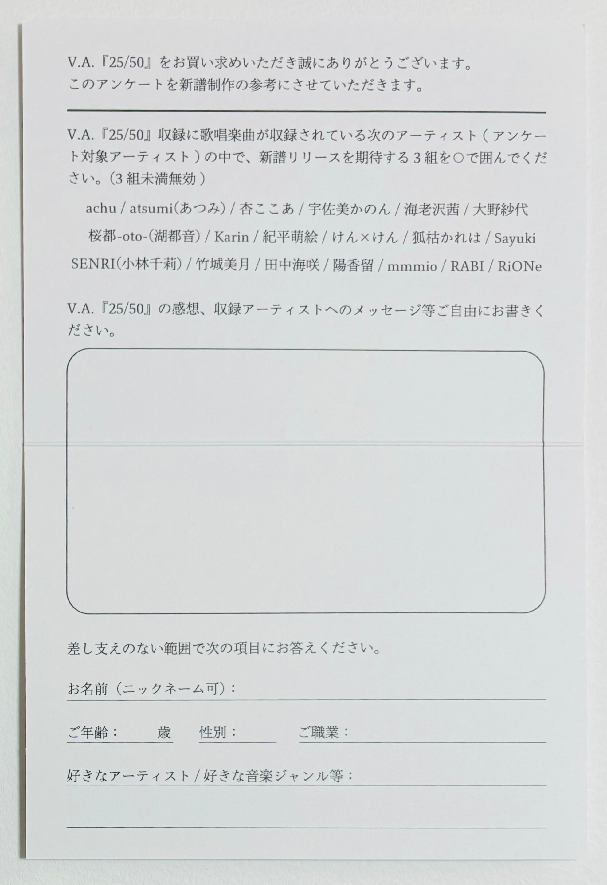 『25/50』(杏ここあ「ミサンガ」収録CD) ※楽曲提供投票ハガキ付き